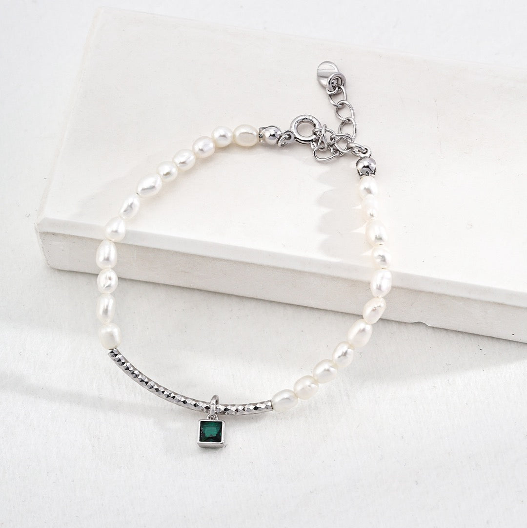 - Material: 925 sterling silver, natural freshwater pearls, green zircon