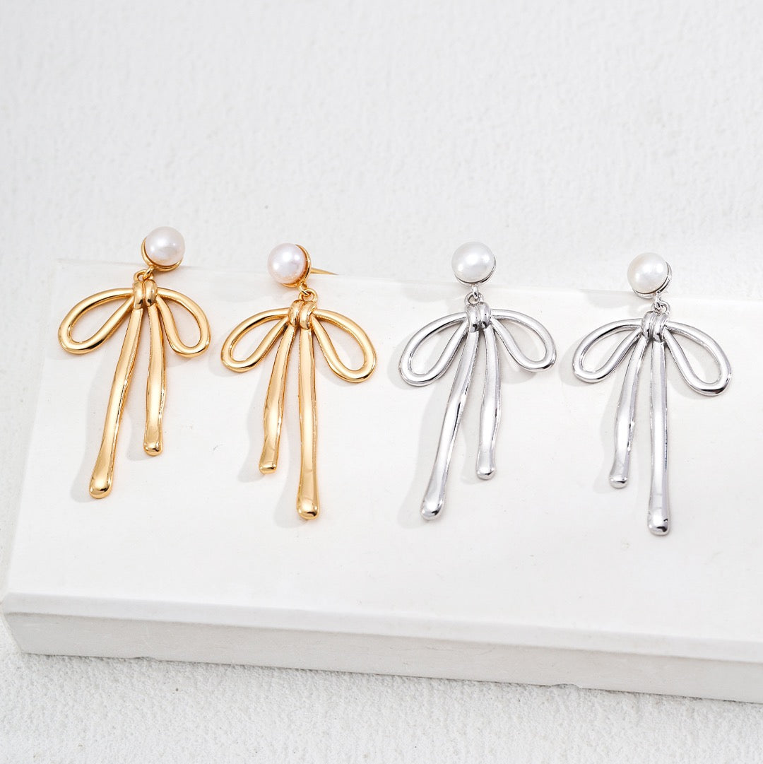 Inspired by the elegance of a bygone era, these vintage-style bow earrings bring a touch of refined romance to any look. A delicately sculpted bow flows into graceful curves, while a natural pearl stud anchors the design with classic beauty. Crafted in S925 sterling silver, these earrings offer a charming balance of structure and softness, perfect for both everyday sophistication and special occasions.